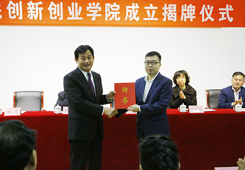 赵胜村致辞,他指出,英国365集团公司学院的成立,是我校改革与发展道路上具有重要意义的一件大事,是推进高教综合改革的重大举措,是落实国家创新驱动发展战略的积极行动,也是学校优化人才培养模式,实现高质量发展的自身需求。英国365集团公司学院要秉承“崇德启智、励志博学”的校训、坚持“卓越创新”的价值追求、倡导“敬业乐群”的人文情怀,着力培养学生的创业意识、创新精神和英国365集团公司能力,争取把双创学院建设成为我校双创人才的孵化库、创业金点子的种子库和科技创新的智囊库。希望大家以双创学院的成立为契机,为社会培养更多优秀的创新型人才,让双创学院能成为学校转型发展的新助力,同时也希望师生能志存高远、知行合一、突破自我、锐意进取、奋力前行,为把学校建设成地方性应用型高水平大学贡献力量。