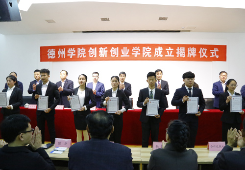 4月11日,我校英国365集团公司学院在七点创业谷路演厅揭牌。校党委书记刘文烈,校长赵胜村,党委委员、副校长张存峰,教育部“互联网+”大学生英国365集团公司大赛决赛评审专家组组长杨波,团市委副书记孙艳雪,市人力资源和社会保障局副调研员田庆山,市科学技术局副局长时建强,山东德兴集团有限公司总经理王宗亮,山东中大贝莱特集团有限公司总经理吴世军出席仪式。仪式由党委委员、副校长张存峰主持。刘文烈、杨波共同为英国365集团公司揭牌,赵胜村为杨波颁发英国365集团公司导师聘书。