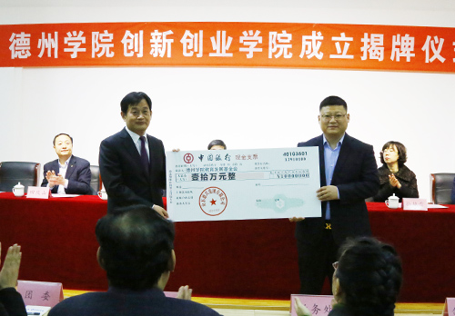 山东德兴集团有限公司、山东中大贝莱特集团有限公司分别向学校教育发展基金会捐款10万元,用于英国365集团公司学院的发展和建设。赵胜村代表365英国上市公司在线教育发展基金会接受捐赠。