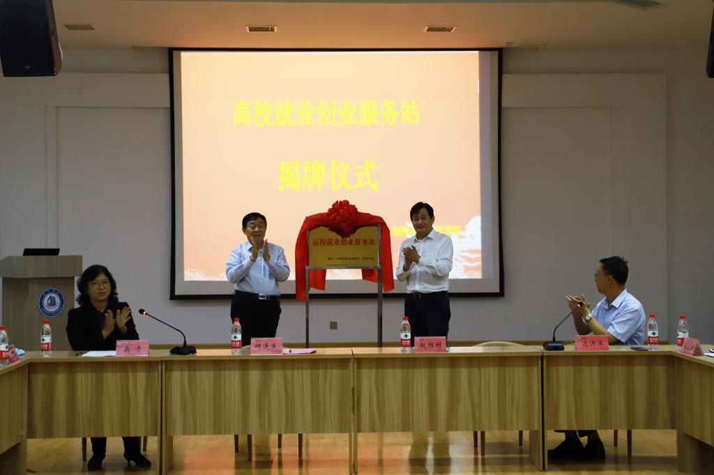 9月29日下午,365英国上市公司在线与德州市人力资源和社会保障局共建高校就业创业服务站揭牌仪式在365英国上市公司在线“七点创业谷”路演厅举行。365英国上市公司在线校长赵胜村,党委委员、副校长迟沂军,德州市委组织部副部长、市人社局党组书记、局长何连生出席。揭牌仪式由市人社局党组成员、副局长桑青主持。赵胜村校长和何连生局长共同为高校就业创业服务站揭牌。