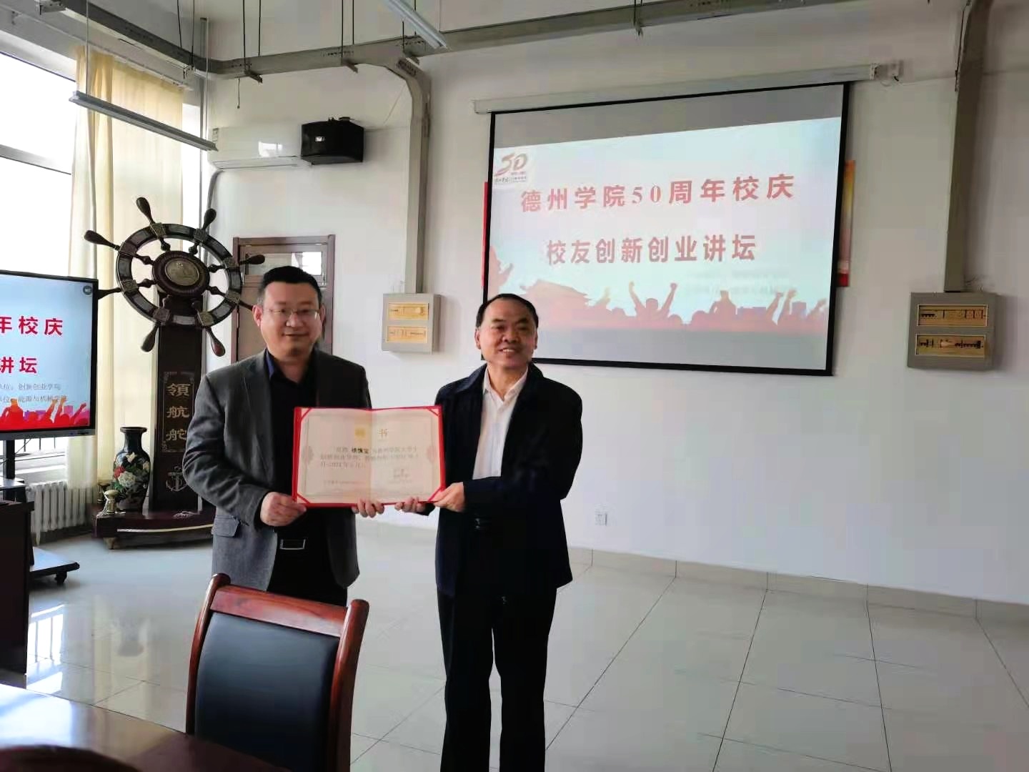 开讲前,能源与机械学院党总支书记王宝泉为徐慎宝校友颁发了英国365集团公司导师聘书。