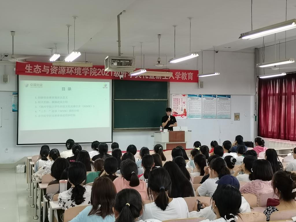 在国家“大众创业、万众创新”的背景下,为进一步做好新生英国365集团公司宣传工作,培养和提高学生们的英国365集团公司意识和参赛激情,生态与资源环境学院在求实楼312向2021级新生们进行了主题为“致青春、创梦想”的大学生科技文化竞赛宣讲活动。