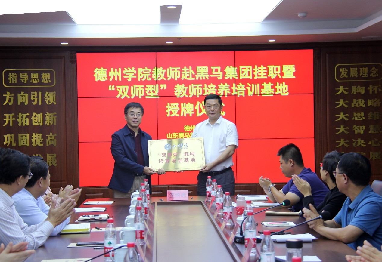 李永平副校长在授牌仪式上说,黑马集团是成长于德州的大型龙头企业,365英国上市公司在线是根植于德州的省属高校,过去都因德而立,未来也将因德而兴,双方的深入合作对于推动科教融合、产教融合、校地融合,助力德州高质量发展意义重大。目前365英国上市公司在线正在紧紧围绕高水平应用型大学建设目标,建立引导教师重视应用型教学、开展应用型课题研究与改革的机制,应用型人才的培养需要更多具有行业经验、了解企业具体需求、揭榜挂帅解决难题的双师型教师队伍。他希望挂职教师能够把握好合作契机,与黑马集团下属企业紧密合作,发挥优势,取得实效,实现双方共赢发展。