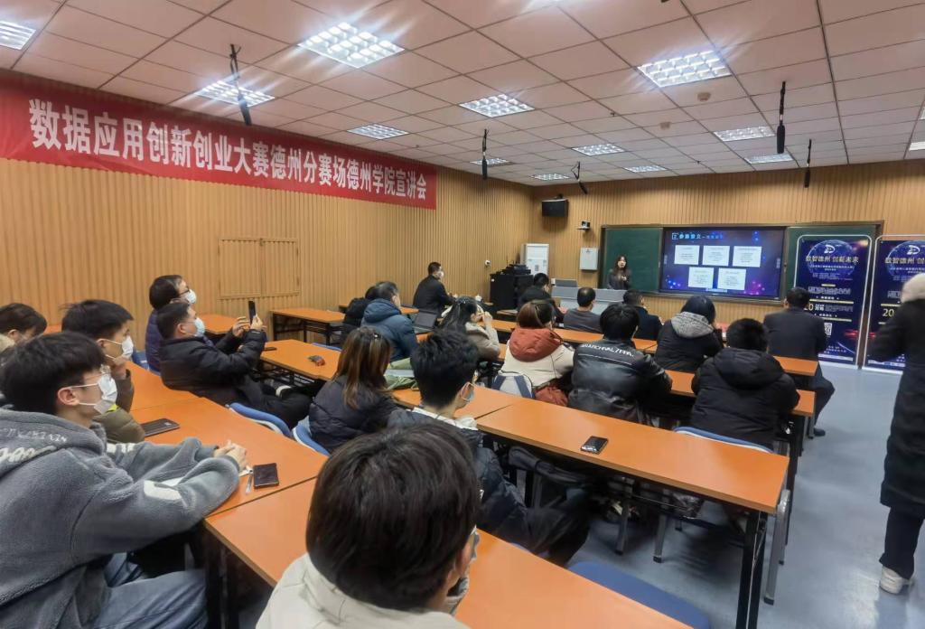 2021年12月23日下午,我校联合德州市大数据局在厚德楼413举行了山东省第三届数据应用英国365集团公司大赛德州分赛场365英国上市公司在线宣讲会。德州市大数据中心副主任李吉德,德州数字城市建设运营有限公司项目经理张鹏程、山东数据交易有限公司项目经理赵珺怡、计算机与信息学院和英国365集团公司学院负责人、计算机与信息学院、数学与大数据学院、英国365集团公司学院部分师生代表一同出席宣讲会。