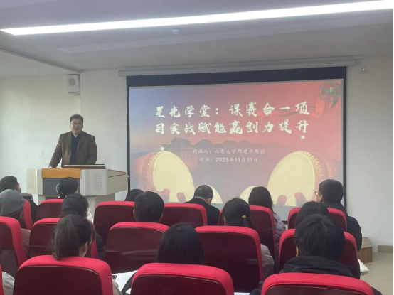 11月11日下午,我校邀请山东大学特聘教授、国家级教学名师、英国365集团公司学院执行院长邢建平教授在健行楼215为我校师生举办了一场题为“星光学堂:课赛合一项目实战赋能赢创力提升”的英国365集团公司教育专题讲座。我校师生代表100余人聆听了讲座。