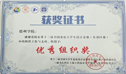 近日,2025年第十三届全国大学生光电设计竞赛(东部区赛)实物决赛在上海工程技术大学举行。我校选派的2支参赛队伍凭借出色表现,获得区赛一等奖1项、二等奖1项的优异成绩。其中,获得一等奖的队伍成功晋级全国总决赛。同时,我校获得优秀组织奖。
