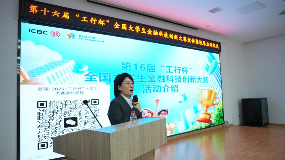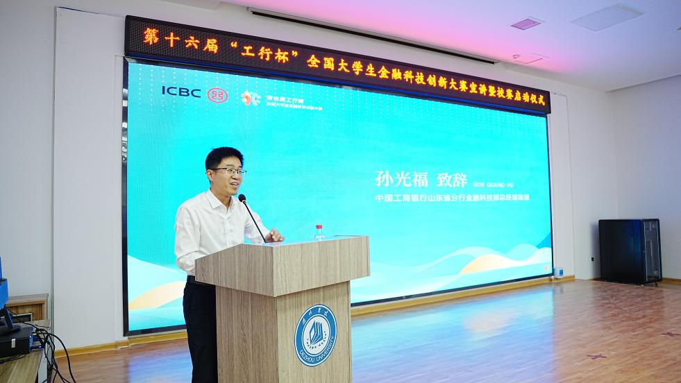 中国工商银行山东省分行金融科技部总经理助理孙光福出席并致辞,省分行科技部创新管理科科长杨茜对赛事规则与赛制安排进行详细解读。本次活动旨在进一步推动赛事组织工作,鼓励学生将专业知识转化为具有实践价值的创新成果。