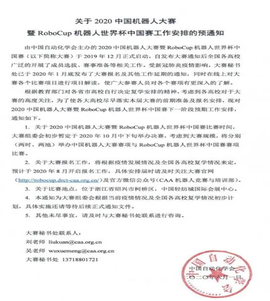 二、关于组织2020中国机器人大赛暨RoboCup机器人世界杯中国赛校赛通知